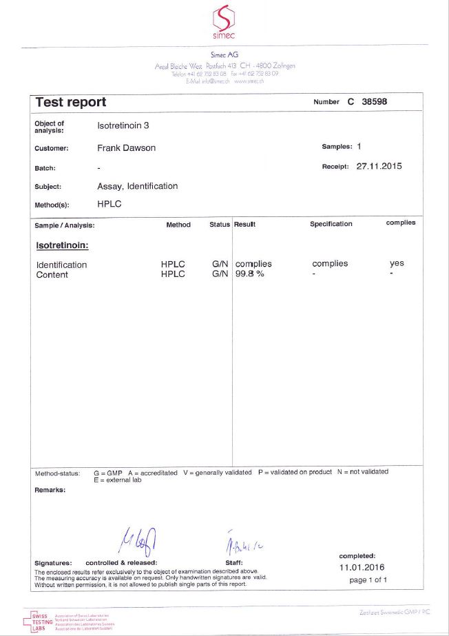 Isotretinoin - raws purity